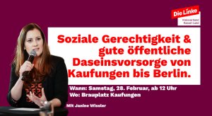 - Janine Wissler in KaufungenDie Linke in Kaufungen lädt herzlich zur Wahlkampfveranstaltung ein! Mit dabei:Janine Wissler, ehemalige Bundesvorsitzende der Linke und aktuelle Bundestagsabgeordnete, Torsten Felstehausen, ehemaliger Landtagsabgeordneter und aktuell Platz 3 für den Landkreis sowie Platz 1 für Kaufungen auf der GLLK, und Jan …